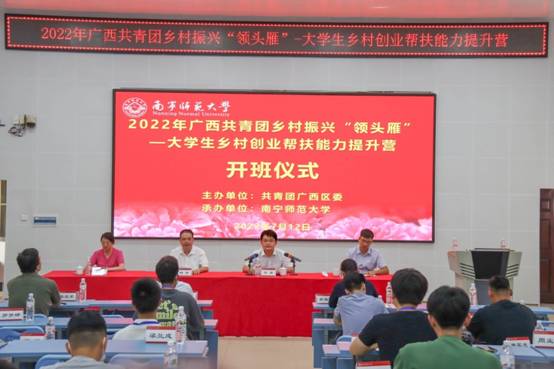受共青团广西区委委托,我校继续教育学院承办的2022年广西共青团乡村振兴“领头雁”-- 大学乡村创业帮扶能力提升营于7月12-15日在学校顺利举行。培训对象主要是全区2020年以来毕业返乡创业的大学毕业生共41人。共青团广西区委青年发展部苏甫部长出席开班仪式,沈彦东四级调研员主持开班仪式。