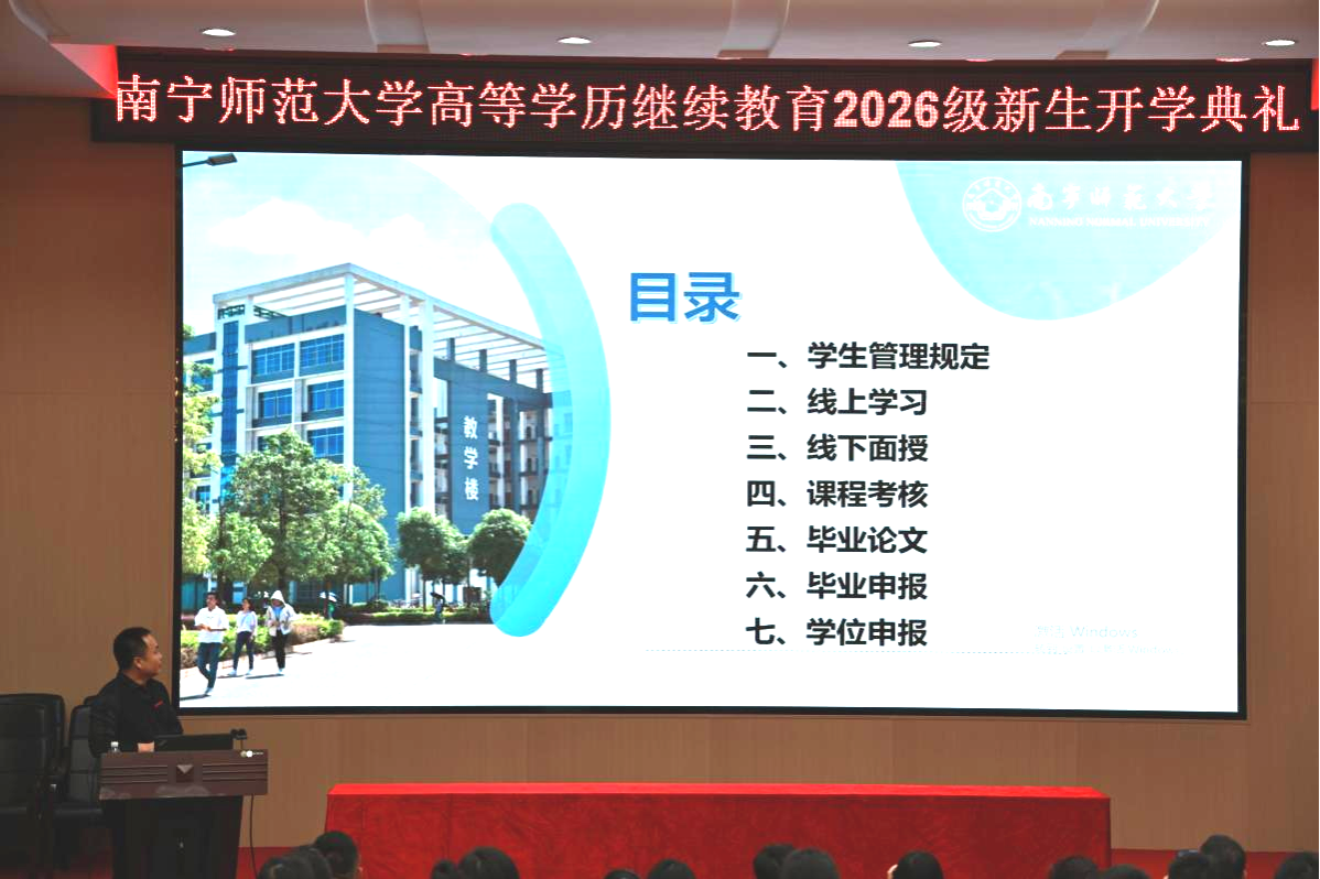 春潮涌动启新程,笃行不怠向未来。3月21日上午,我校高等学历继续教育2026级新生开学典礼在明秀校区文星楼301报告厅隆重举行。本次典礼采用“线上直播+线下参会”相结合,打破地域限制,让新生们共赴开学之约。继续教育学院陈宗武院长、继续教育学院成高中心全体工作人员、教师代表及150余名新生代表齐聚主会场,全区各地新生同步在线收看直播,共同开启求学新征程。