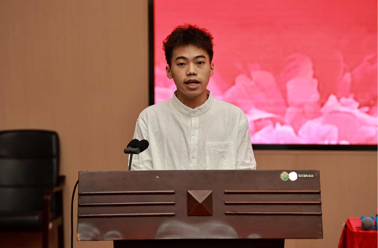 随后,新生代表2026级小学教育专业的杨武恒同学、教师代表马克思主义学院教师蒙灵芝分别作了发言。继续教育学院院长为新生代表发放校徽。